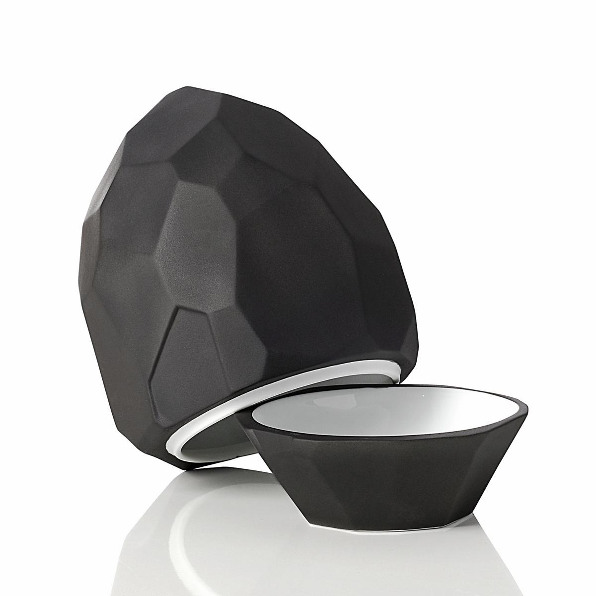 Kulinarische Schmucksteine: Die Felsen "Pépites Irisées" von Raynaud sind ein tiefer Teller und passende Cloche in einem. Die Felsenteile sind nur innen glänzend glasiert. Außen besitzen sie eine seidig matte Textur, welche in irisierenden Farben schimmert. Um die Kreativität von Chef- und Hobbyköchen zu unterstützen, hat Mariela Schwarz Montiel die Kollektion "Pépites" entworfen.