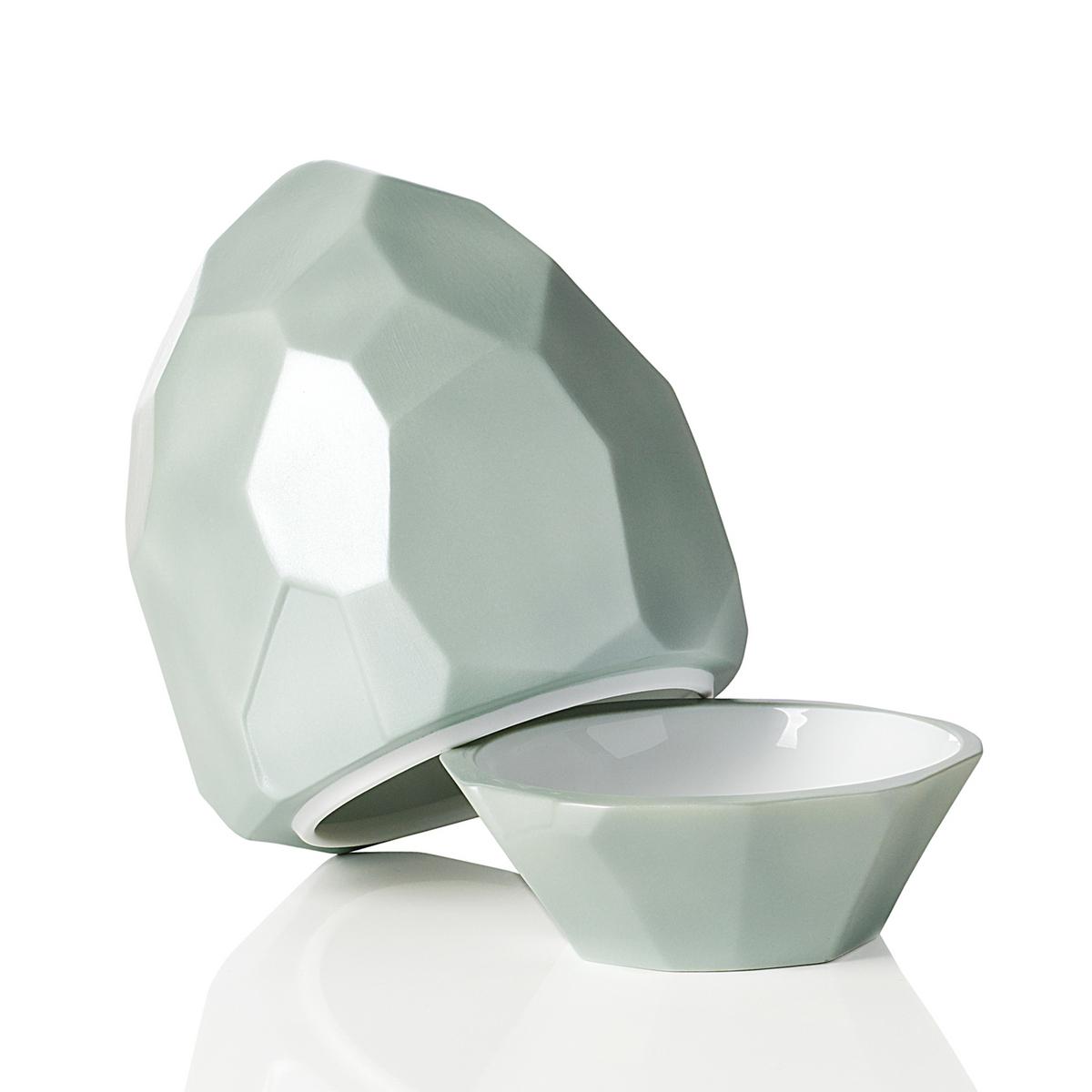 Kulinarische Schmucksteine: Die Felsen "Pépites Irisées" von Raynaud sind ein tiefer Teller und passende Cloche in einem. Die Felsenteile sind nur innen glänzend glasiert. Außen besitzen sie eine seidig matte Textur, welche in irisierenden Farben schimmert. Um die Kreativität von Chef- und Hobbyköchen zu unterstützen, hat Mariela Schwarz Montiel die Kollektion "Pépites" entworfen.