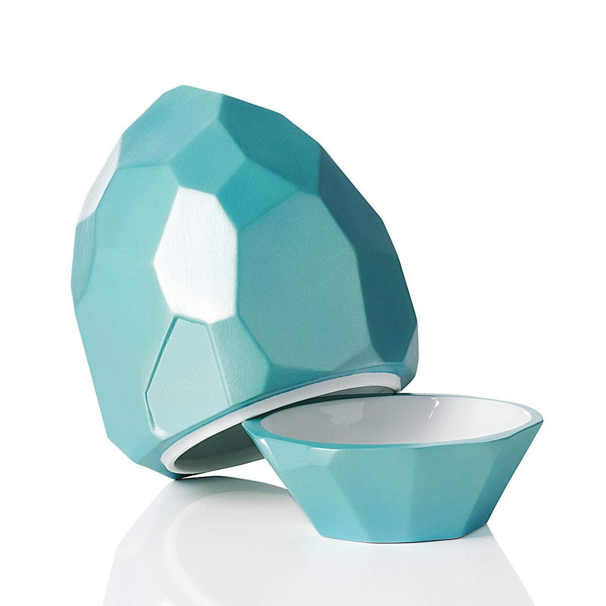 Kulinarische Schmucksteine: Die Felsen "Pépites Irisées" von Raynaud sind ein tiefer Teller und passende Cloche in einem. Die Felsenteile sind nur innen glänzend glasiert. Außen besitzen sie eine seidig matte Textur, welche in irisierenden Farben schimmert. Um die Kreativität von Chef- und Hobbyköchen zu unterstützen, hat Mariela Schwarz Montiel die Kollektion "Pépites" entworfen.