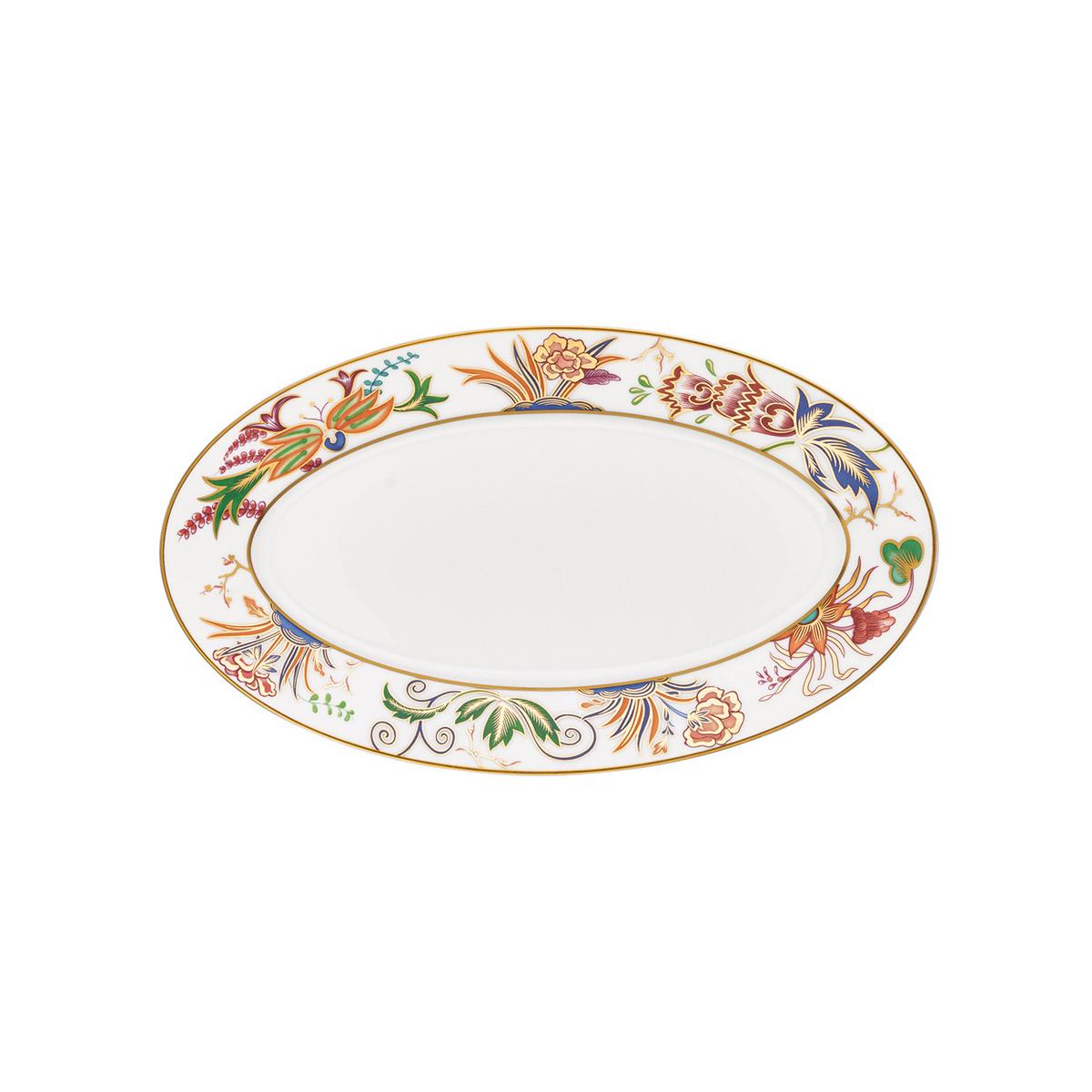 Designer Olivier Maillefer entwarf die "Imari" Dekore als Wasserfarbenmalereien. Frei von steifen Strukturen und strengen Symmetrien, kreierte er für jedes Stück der umfangreichen Kollektion neue Blumenmotive von leichtfüßiger Eleganz und heiterer Spontaneität. Großzügige Feingold-Applikationen bringen die insgesamt 17 verschiedenen Farben der Blumendekore lebendig zum Leuchten. Tiefblaue, von goldenen Mustern überzogene Teller bilden einen fantastischen Kontrast zur farbenfrohen Blumenpracht.