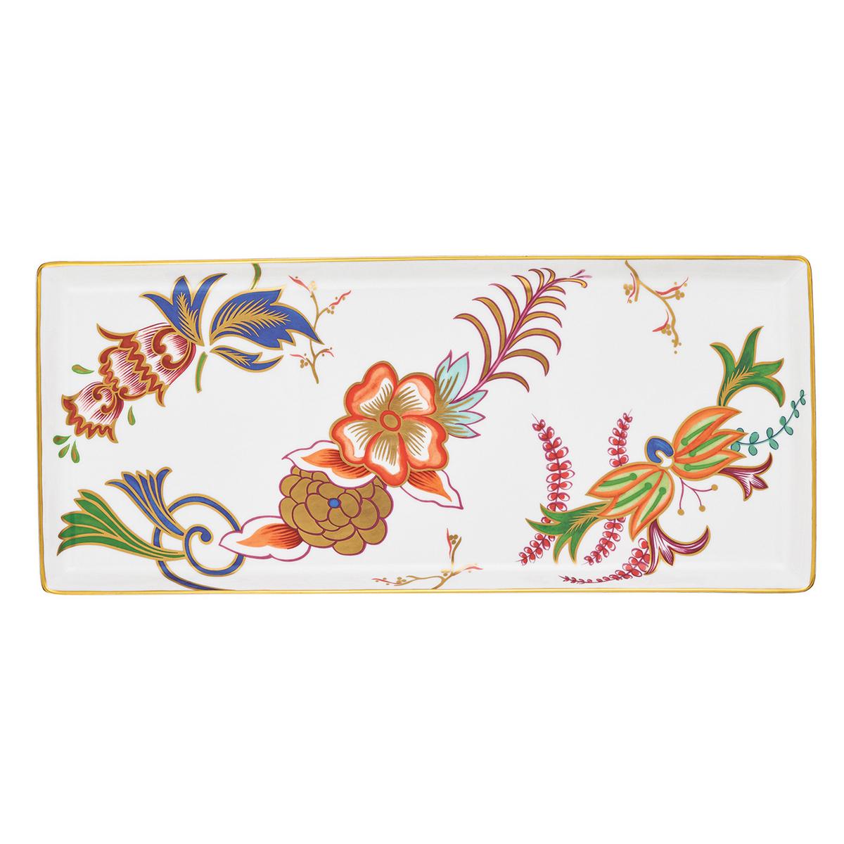 Designer Olivier Maillefer entwarf die "Imari" Dekore als Wasserfarbenmalereien. Frei von steifen Strukturen und strengen Symmetrien, kreierte er für jedes Stück der umfangreichen Kollektion neue Blumenmotive von leichtfüßiger Eleganz und heiterer Spontaneität. Großzügige Feingold-Applikationen bringen die insgesamt 17 verschiedenen Farben der Blumendekore lebendig zum Leuchten. Tiefblaue, von goldenen Mustern überzogene Teller bilden einen fantastischen Kontrast zur farbenfrohen Blumenpracht.