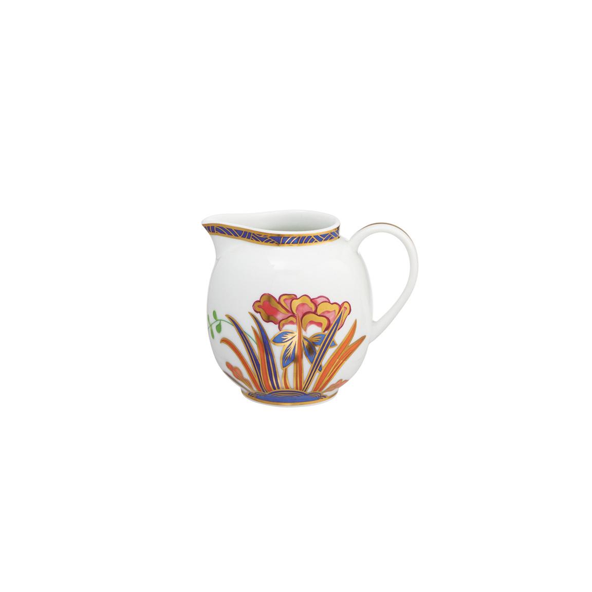 Designer Olivier Maillefer entwarf die "Imari" Dekore als Wasserfarbenmalereien. Frei von steifen Strukturen und strengen Symmetrien, kreierte er für jedes Stück der umfangreichen Kollektion neue Blumenmotive von leichtfüßiger Eleganz und heiterer Spontaneität. Großzügige Feingold-Applikationen bringen die insgesamt 17 verschiedenen Farben der Blumendekore lebendig zum Leuchten. Tiefblaue, von goldenen Mustern überzogene Teller bilden einen fantastischen Kontrast zur farbenfrohen Blumenpracht.