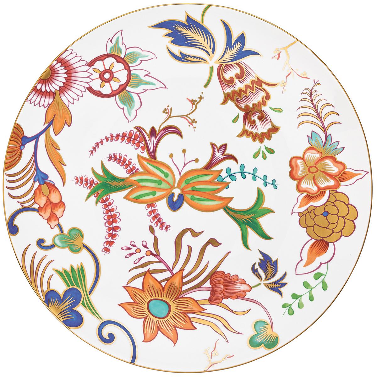 Designer Olivier Maillefer entwarf die "Imari" Dekore als Wasserfarbenmalereien. Frei von steifen Strukturen und strengen Symmetrien, kreierte er für jedes Stück der umfangreichen Kollektion neue Blumenmotive von leichtfüßiger Eleganz und heiterer Spontaneität. Großzügige Feingold-Applikationen bringen die insgesamt 17 verschiedenen Farben der Blumendekore lebendig zum Leuchten. Tiefblaue, von goldenen Mustern überzogene Teller bilden einen fantastischen Kontrast zur farbenfrohen Blumenpracht.