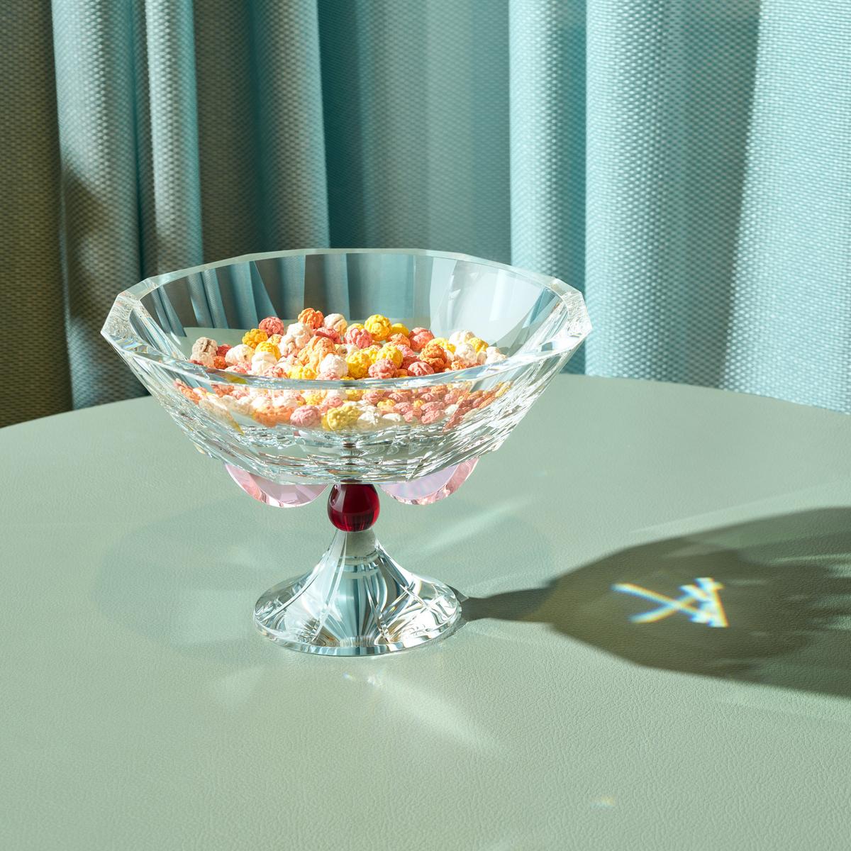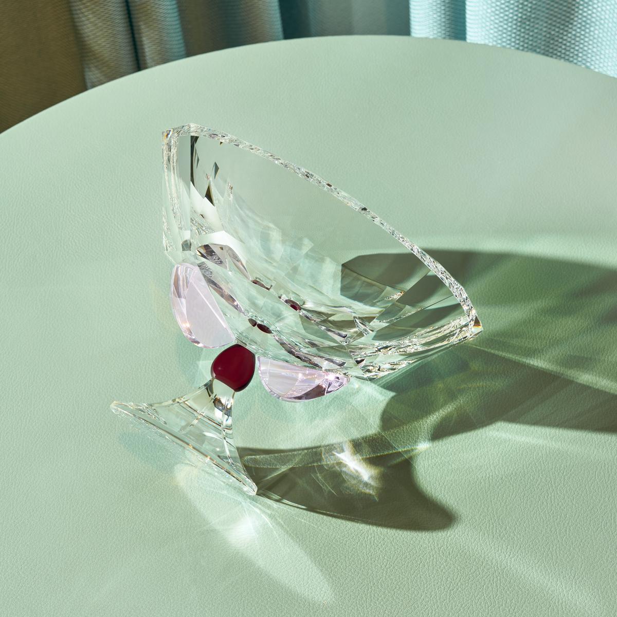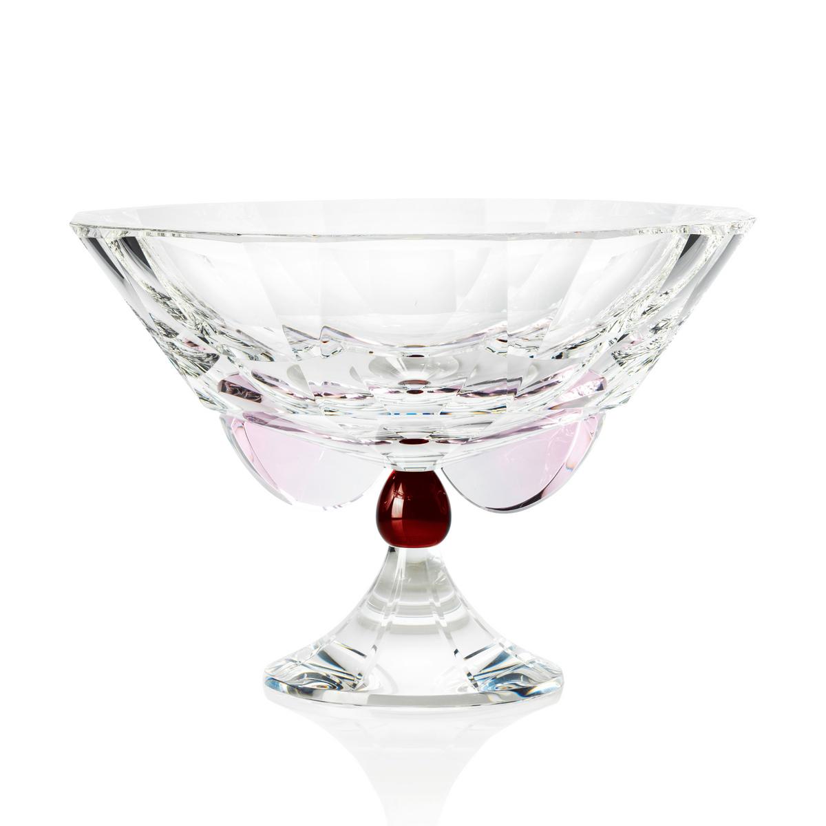 Die Schale "Amira" von Reflections Copenhagen ist ein poetisches Spiel aus Form und Licht. Die facettierte Kristallschale ruht auf einem klaren, skulpturalen Fuß, der durch ein Element aus rotem Kristall kunstvoll verbunden wird. Zarte, rosafarbene Kristall-Halbmonde heben die Schale mit subtiler Eleganz an und verleihen ihr eine fast schwerelose Anmutung.