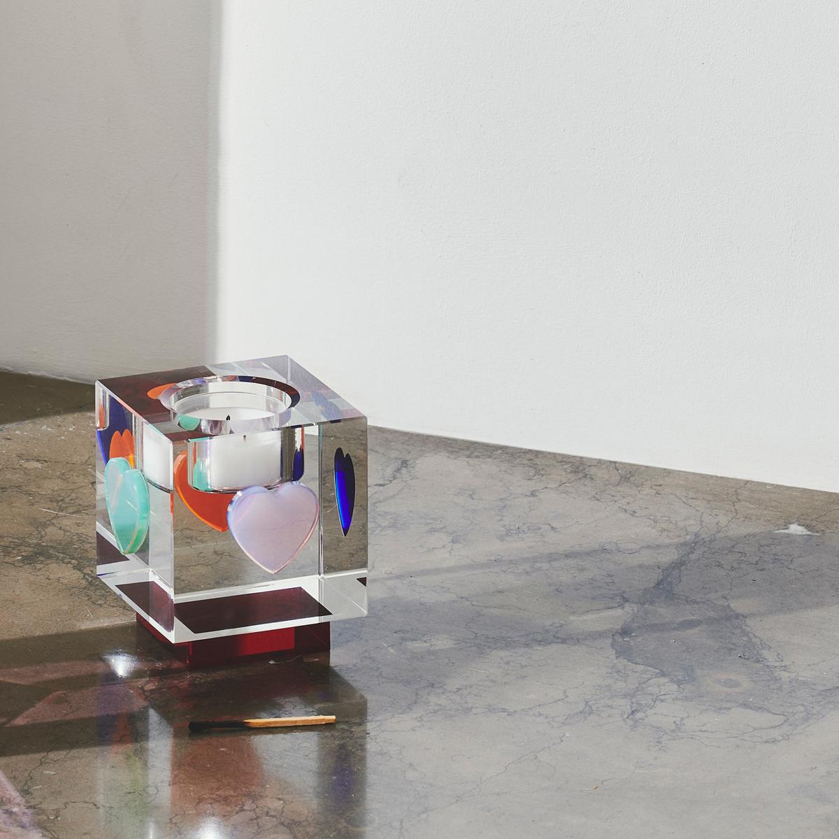 Der Teelichthalter "Lea Heart" von Reflections Copenhagen ist eine Hommage an die Liebe. Er wird aus klarem Kristallglas von Hand geschliffen, auf einem roten Podest platziert und mit Kristallglasherzen in verschiedenen Farben verziert. Diese funkeln wie geschliffene Edelsteine in faszinierenden Farben.