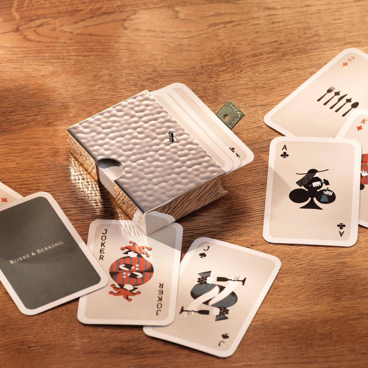 Das Spielkarten-Etui "Martelé" von Robbe & Berking ist ein echter Hingucker in jeder Spielerunde. Ein klassisches Kartendeck aus 55 Spielkarten im exklusiven Robbe & Berking Design findet darin Platz.