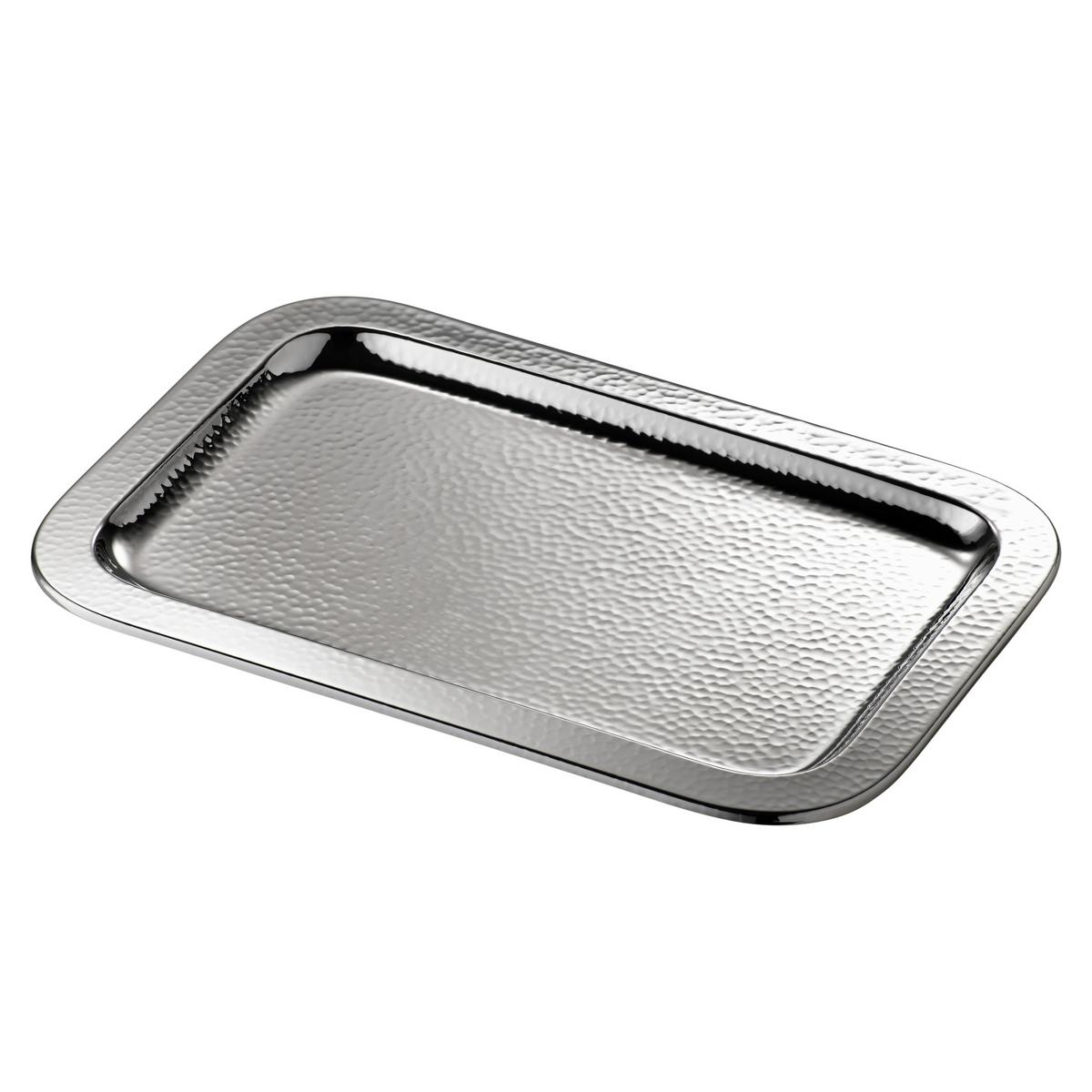 Das Tablett "Martelé" von Robbe & Berking verbindet handwerkliche Raffinesse mit funktionaler Eleganz. Versilbert und veredelt mit der charakteristischen Hammerschlagstruktur, entsteht ein lebendiges Lichtspiel, das die Oberfläche besonders edel wirken lässt.