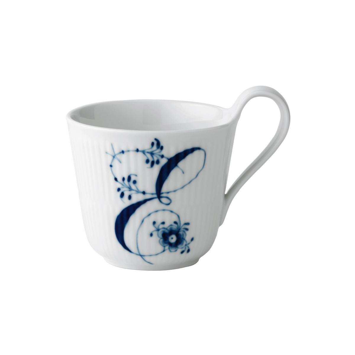 "Blue Fluted Plain" war die erste Porzellankollektion von Royal Copenhagen überhaupt und besteht seit 1775. Die eleganten, hohen Henkel der Porzellanbecher bieten einen hohen Komfort beim Trinken warmer Getränke. Die verspielten Buchstabenmotive geben der traditionellen Kollektion einen modernen Touch.
