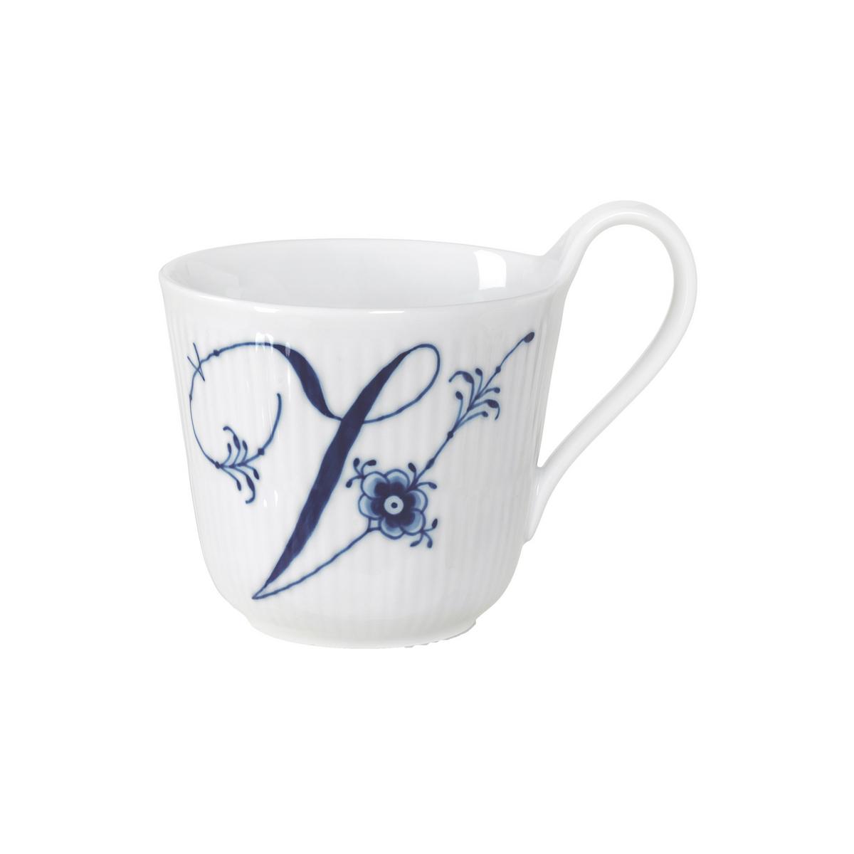 "Blue Fluted Plain" war die erste Porzellankollektion von Royal Copenhagen überhaupt und besteht seit 1775. Die eleganten, hohen Henkel der Porzellanbecher bieten einen hohen Komfort beim Trinken warmer Getränke. Die verspielten Buchstabenmotive geben der traditionellen Kollektion einen modernen Touch.