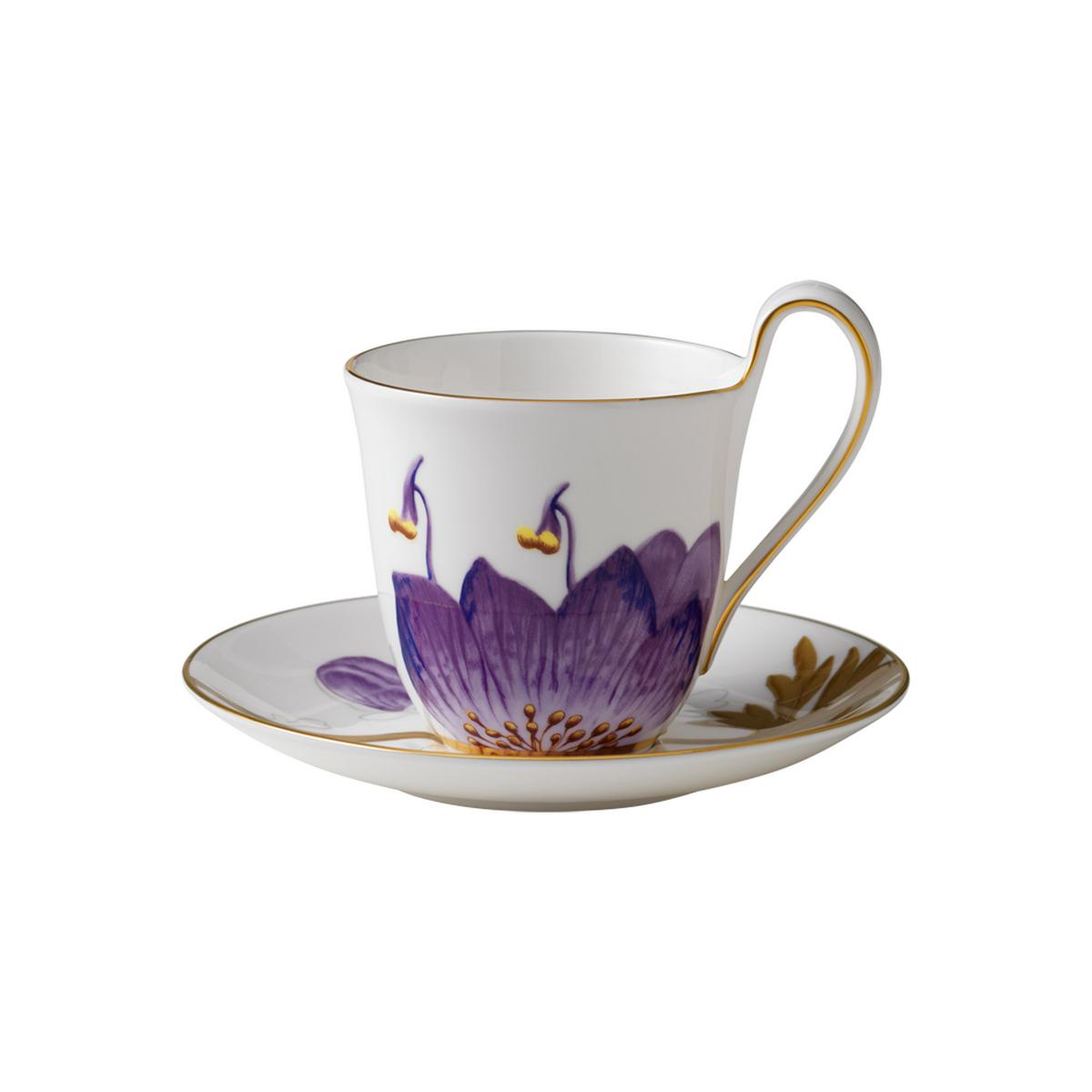 "Flora" Kaffee-/Teetasse mit hohem Henkel und Unterteller, Stiefmütterchen von Royal Copenhagen