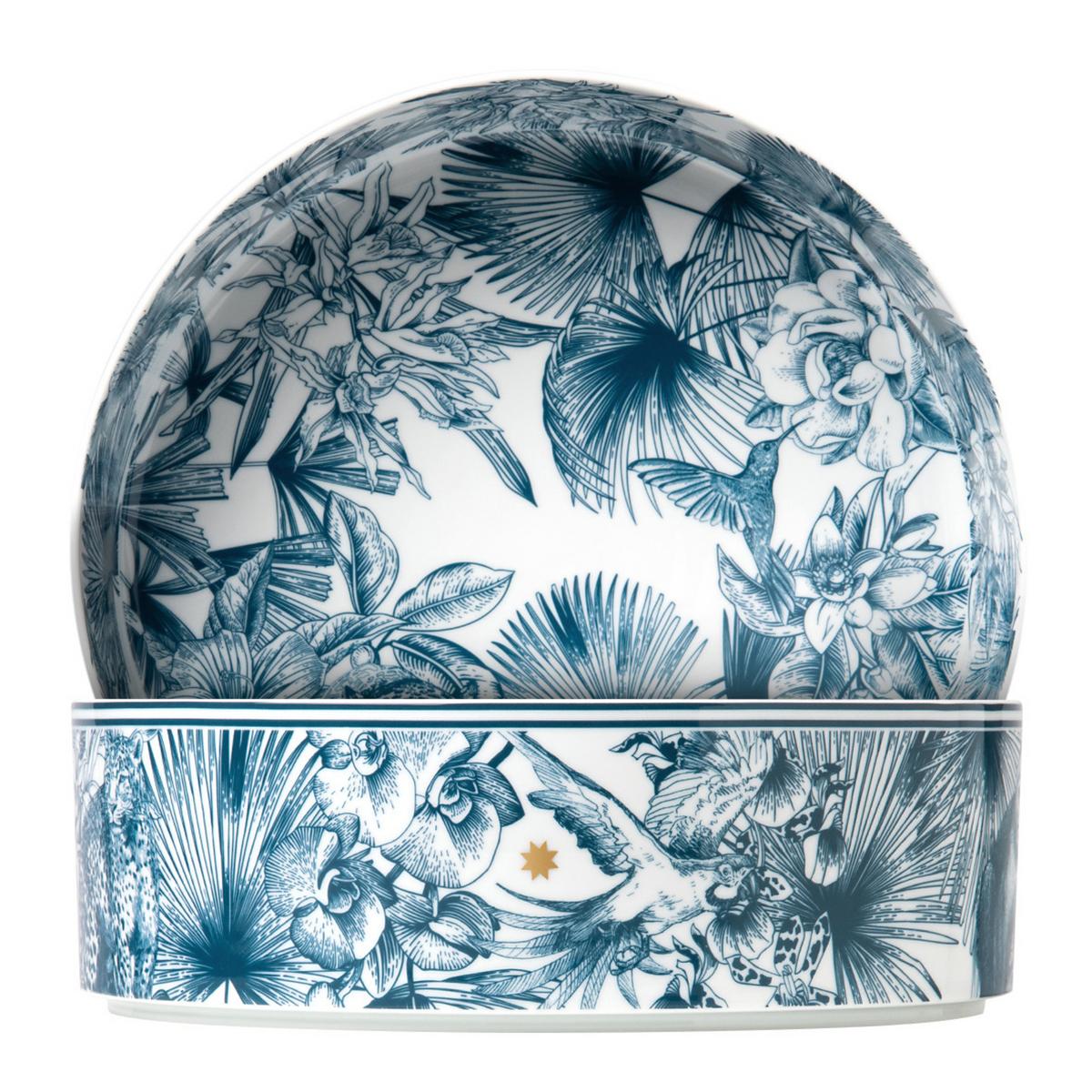 Das Paradies in Blau. Entdecken Sie die Schönheit der Natur mit dem Tafelservice "Paraiso Blue" von Sieger by Fürstenberg. Für das Service hat Designer Michael Sieger exotische Naturmotive aus aller Welt zusammengetragen, von tropischen Pflanzen bis zu wilden Tieren wie Leoparden, Papageien und Tukane.