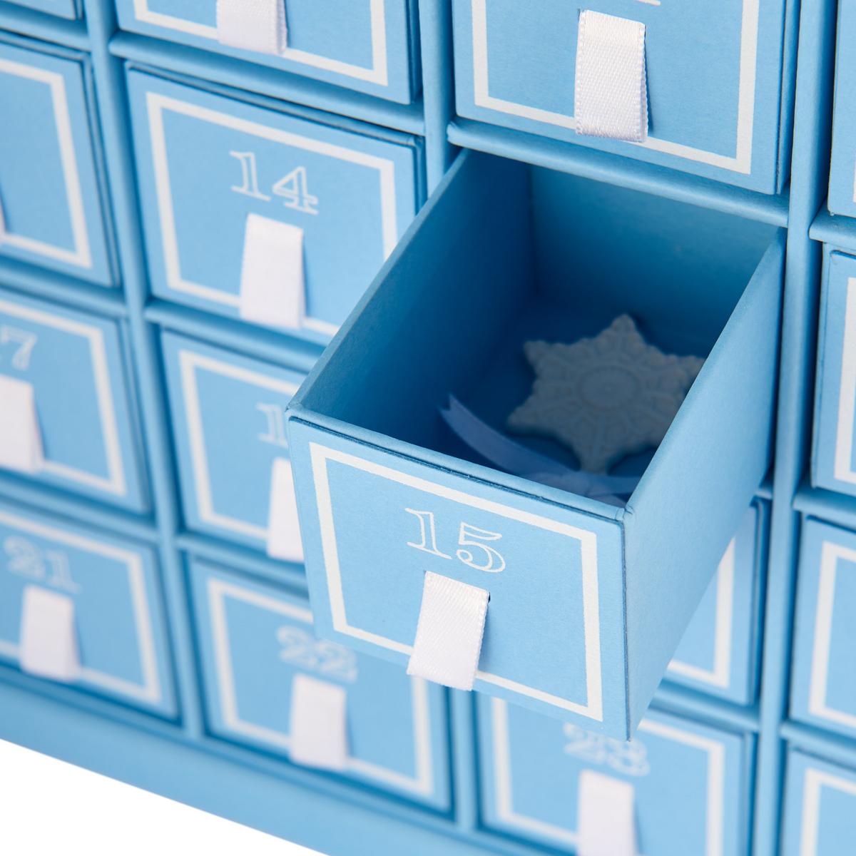 Der elegante Wedgwood Adventskalender bringt in der Vorweihnachtszeit jeden Tag Freude, denn in jedem nummerierten Kästchen verbirgt sich ein kunstvoll gefertigtes blau-weißes Porzellanornament für den Weihnachtsbaum. Jede der 24 Miniatur-Weihnachtsdekorationen aus Porzellan ist mit einem weißen Satinband versehen. Freuen Sie sich auf Lieblingsstücke der Saison und bezaubernde Miniaturen der berühmtesten Stücke von Wedgwood. Im Laufe des Monats werden Sie eine wunderbare Sammlung an Weihnachtsschmuck aufbauen, an dem Sie viele Jahre Freude haben werden.