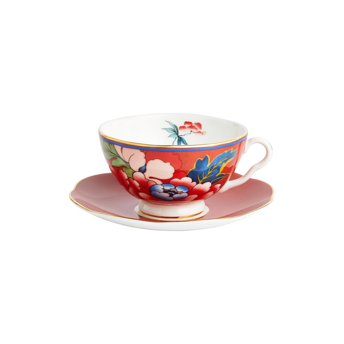 Alle Teile sind in leuchtenden Farben gehalten und mit wunderschönen Pfingstrosen und orientalisch anmutenden Akzenten verziert. Die feinen Goldakzente runden das Set perfekt ab.