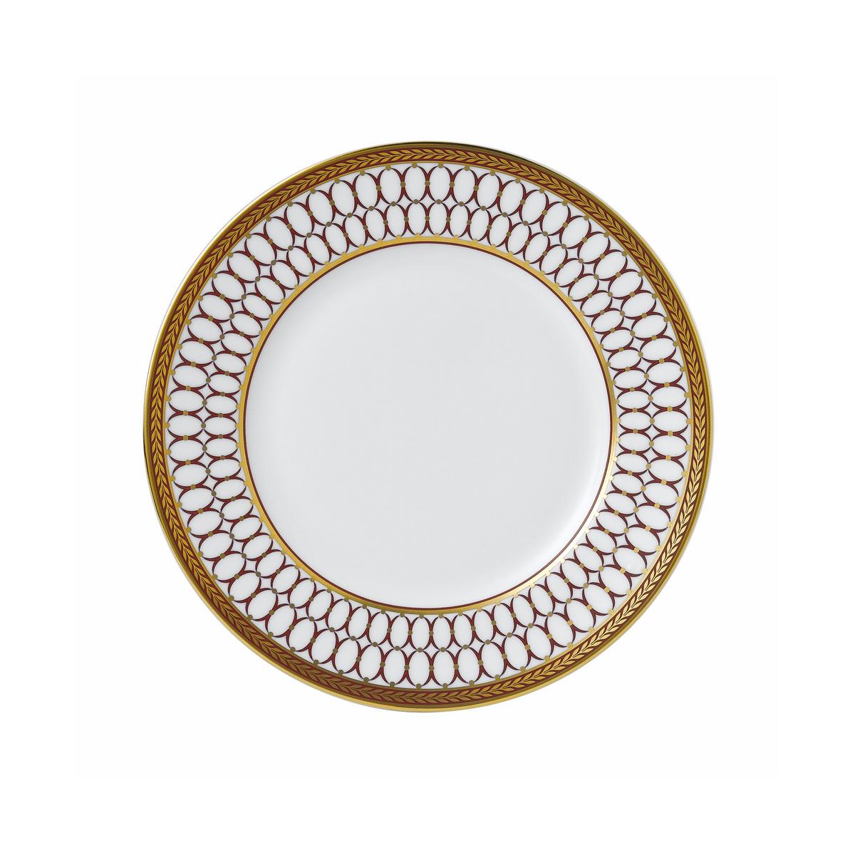 Verleihen Sie Ihrem Tisch ein königliches Flair mit dem Tafelservice "Renaissance Red" von Wedgwood. Dieses edle Geschirr aus Fine Bone China ist mit dem ikonischen Wedgwood-Kamee-Motiv verziert und zeigt einen neoklassizistischen Bordüren- und Goldrand für einen luxuriösen Look.