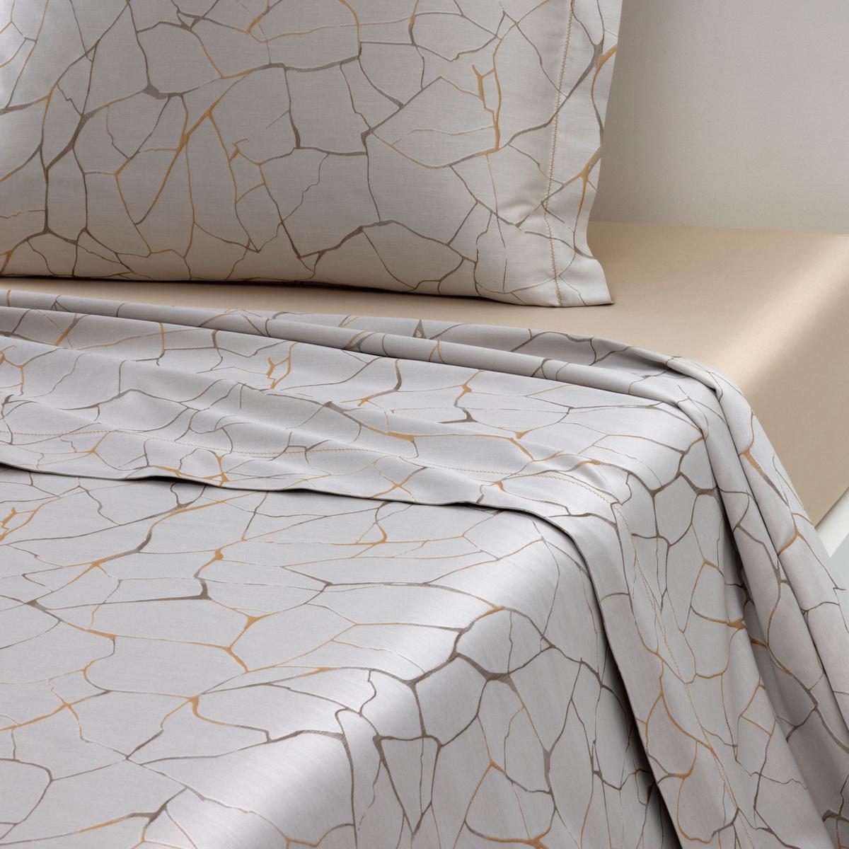 Die Bettwäsche "Fragment" von Yves Delorme Couture ist eine leise Hommage an meisterhafte Handwerkskunst und edle Materialien. Inspiriert von der japanischen Ästhetik, in der Schönheit auch in der Unvollkommenheit liegt, greift die Kollektion das Prinzip des Kintsugi auf – die Kunst, Bruchstellen mit Gold zu veredeln.