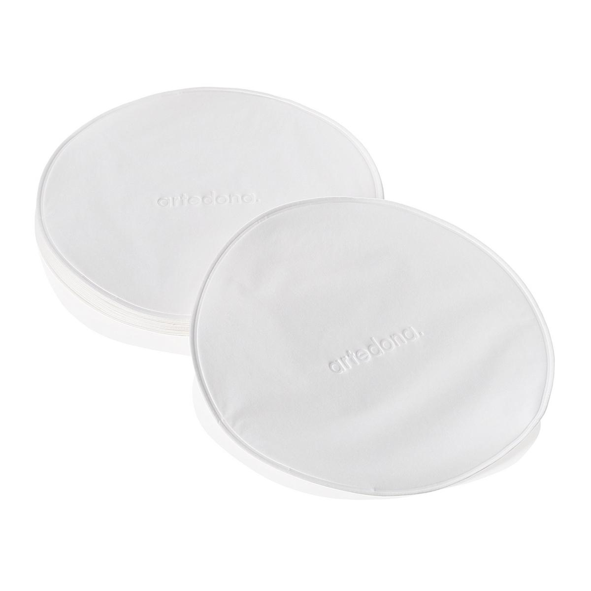 Die Tellerdeckchen bestehen aus 12-lagiger Tissuewatte mit diskreter Artedona-Prägung. Das weiche Material ist reißfest, stoßfest, hygienisch und platzsparend. Wenn eine Decke schmutzig wird oder einreißt, können Sie sie wie ein Taschentuch entsorgen und einfach eine neue verwenden.