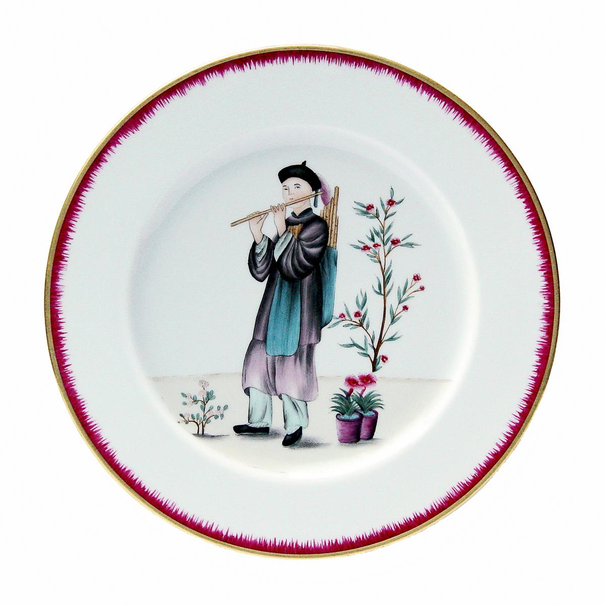 "Platzteller: Chinoiserie von Alberto Pinto aus Limoges-Porzellan in sechs folkloristischen Motiven."