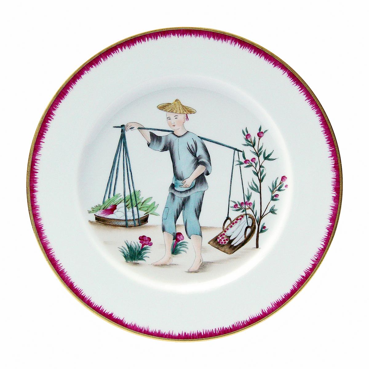 "Platzteller: Chinoiserie von Alberto Pinto aus Limoges-Porzellan in sechs folkloristischen Motiven."