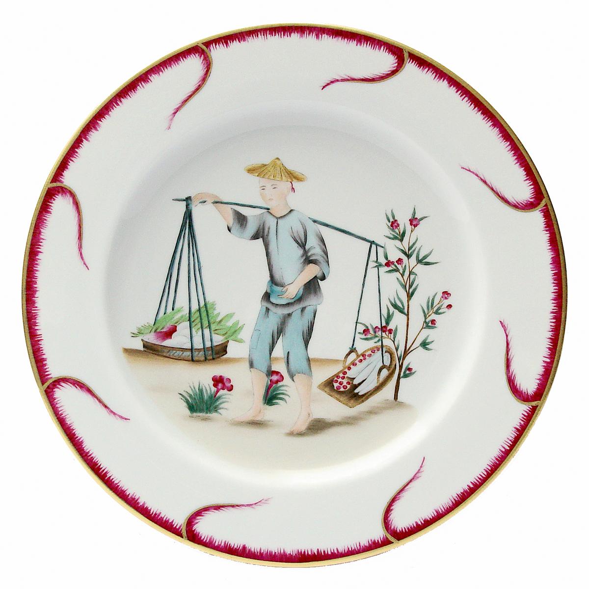 "Platzteller: Chinoiserie von Alberto Pinto aus Limoges-Porzellan in sechs folkloristischen Motiven."