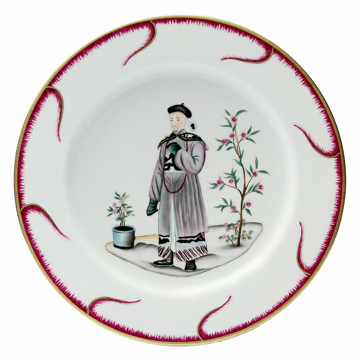 "Platzteller: Chinoiserie von Alberto Pinto aus Limoges-Porzellan in sechs folkloristischen Motiven."