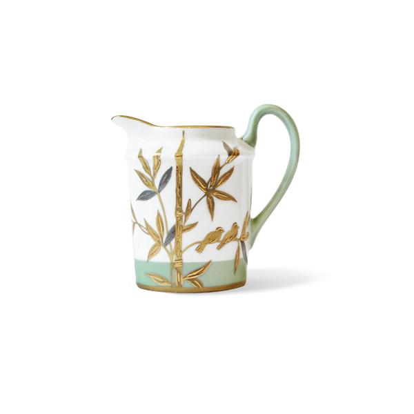 "Kaffee oder Tee? Das handbemalte Limoges-Porzellan mit Bambusmotiven aus Gold und Platin serviert beides bravourös. Passende Teller und Tassen hat Designer Alberto Pinto ebenfalls entworfen."