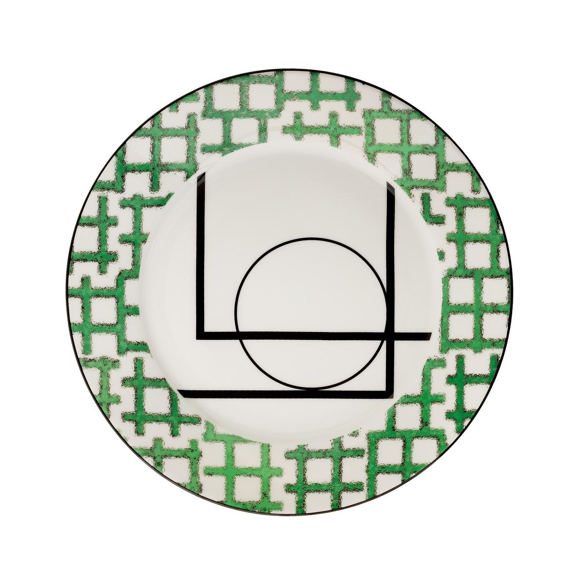Das Porzellanservice "Menta" von Alberto Pinto besitzt ein modernes und abstraktes Dekor. Es spielt mit graphischen Formen wie Kreisen und rechten Winkeln. An den Rändern befindet sich ein grünes Dekor, welches an ein Labyrinth erinnert. Sie können aus sechs unterschiedlichen Teller Dekoren wählen und somit mit unterschiedlichen Designs spielen.