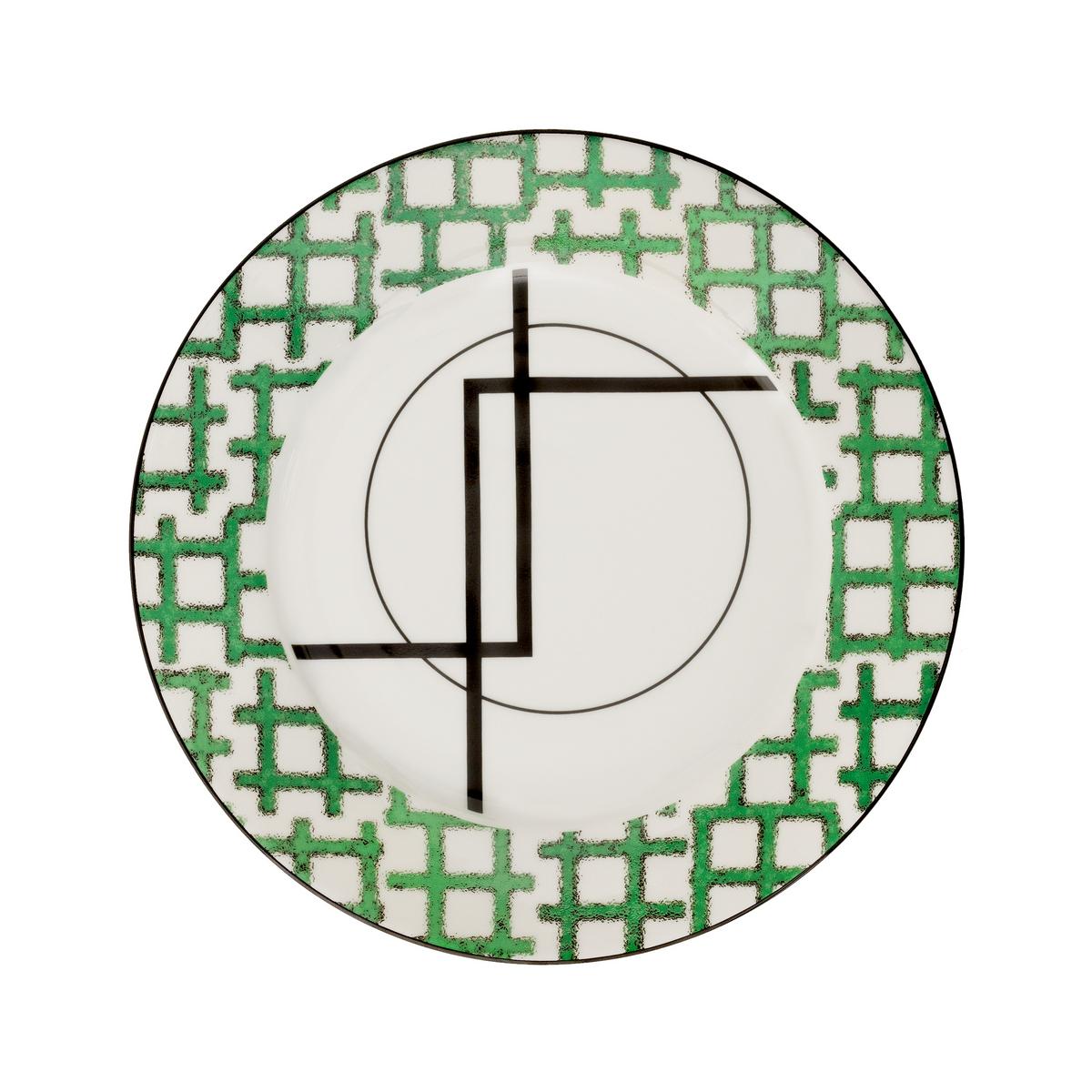 Das Porzellanservice "Menta" von Alberto Pinto besitzt ein modernes und abstraktes Dekor. Es spielt mit graphischen Formen wie Kreisen und rechten Winkeln. An den Rändern befindet sich ein grünes Dekor, welches an ein Labyrinth erinnert. Sie können aus sechs unterschiedlichen Teller Dekoren wählen und somit mit unterschiedlichen Designs spielen.