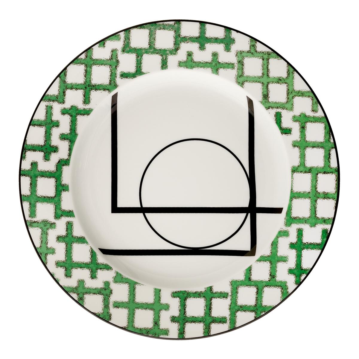 Das Porzellanservice "Menta" von Alberto Pinto besitzt ein modernes und abstraktes Dekor. Es spielt mit graphischen Formen wie Kreisen und rechten Winkeln. An den Rändern befindet sich ein grünes Dekor, welches an ein Labyrinth erinnert. Sie können aus sechs unterschiedlichen Teller Dekoren wählen und somit mit unterschiedlichen Designs spielen.
