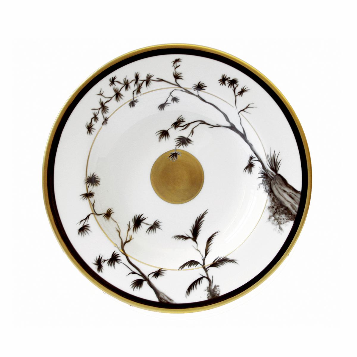 Das teilweise handbemalte Limoges-Porzellan "Vieux Kyoto" ist ein Entwurf von Alberto Pinto und spiegelt die Liebe des französischen Star-Designers zum alten Japan wieder. In Kyoto, der geschichtlich und kulturell bedeutendsten Stadt Japans, gibt es nämlich bis heute über 1.600 buddhistische Tempel, 400 Shintō-Schreine sowie unendlich viele Paläste und Gärten zu bestaunen.