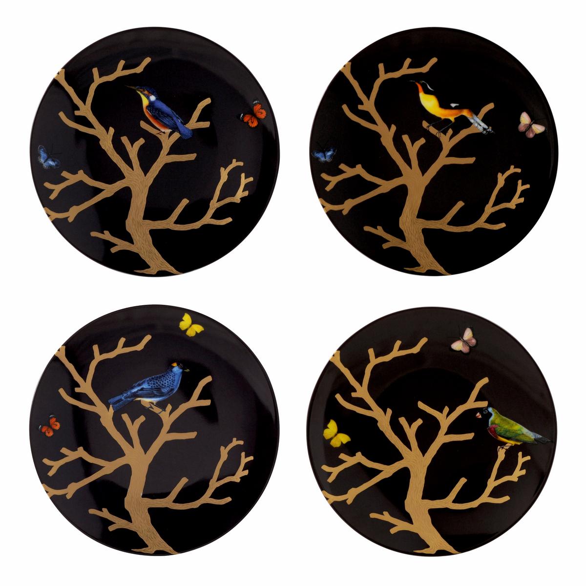 "Aux Oiseaux" Set aus 4 Desserttellern, 4 Dekore, schwarz von Bernardaud
