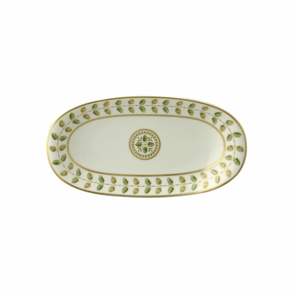 Das Tafelservice "Constance" von Bernardaud ist ideal für ein Herbst-Menü, denn tannengrüne Eichenblätter und Eicheln zieren den weißen Grund. Sie symbolisieren Stärke und Langlebigkeit, haben also auch eine schöne Bedeutung.