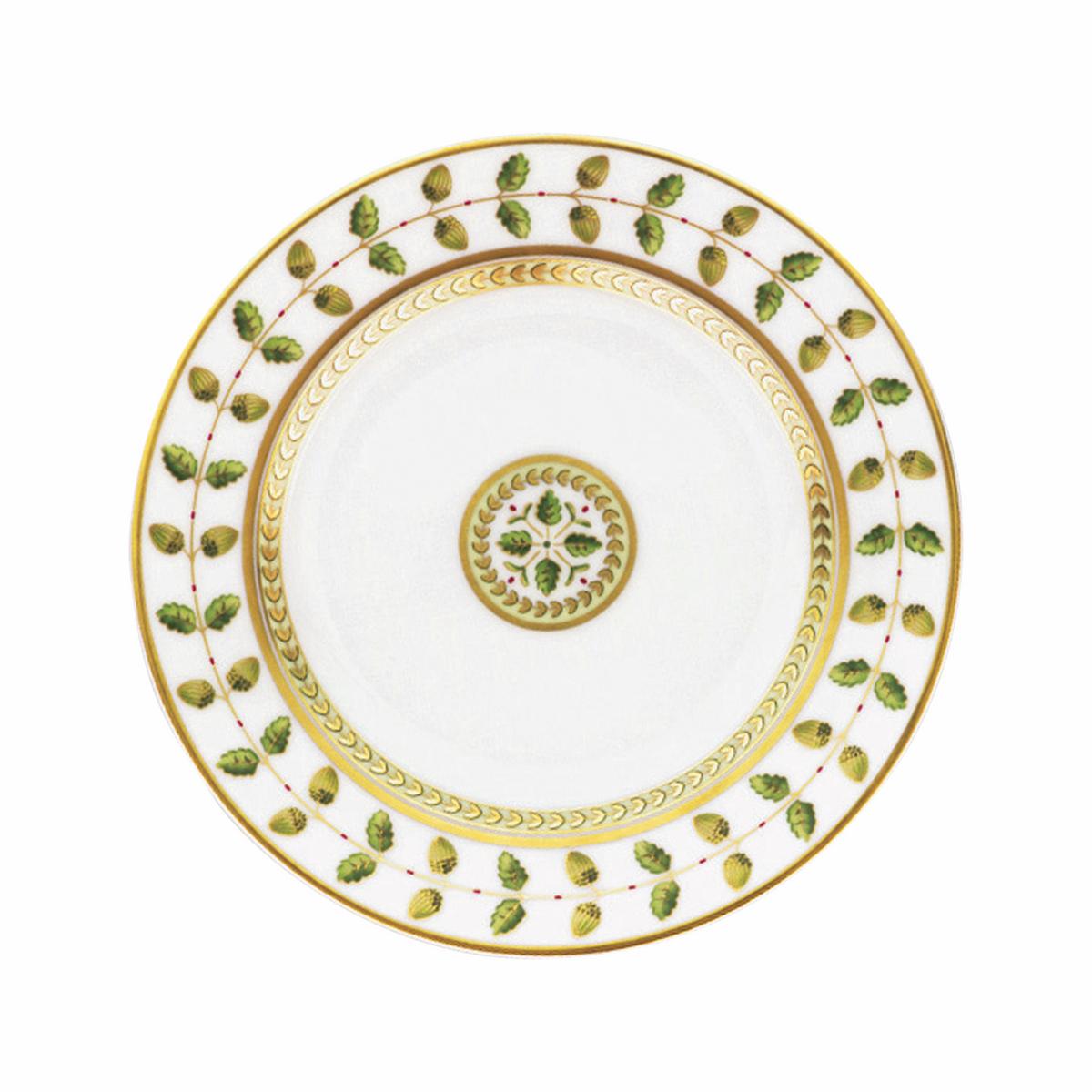 Das Tafelservice "Constance" von Bernardaud ist ideal für ein Herbst-Menü, denn tannengrüne Eichenblätter und Eicheln zieren den weißen Grund. Sie symbolisieren Stärke und Langlebigkeit, haben also auch eine schöne Bedeutung.