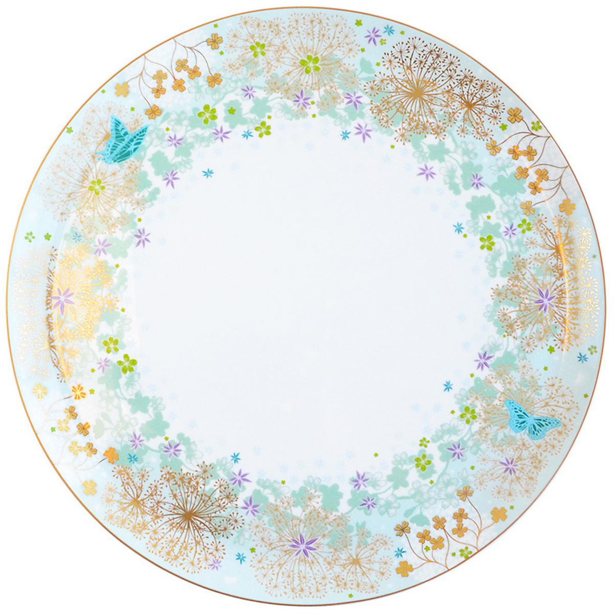 Bei dem Tafelservice "Féerie" von Bernardaud ziert das strahlend weiße Limoges-Porzellan ein Design des französischen Künstlers Michaël Cailloux. Das Blätter- und Blumendesign ist in zarten Türkis-, Lilatönen gehalten und mit wunderschönem Gold veredelt. Kolibris und Schmetterlinge gesellen sich zu Löwenzahnblüten, Kleeblumen und Kirschblüten. Diese Kombination verleiht dem Service eine lebendige Austrahlung. Für die Zusammenarbeit mit Bernardaud wollte der Künstler so wörtlich ein "himmlisch zartes aber gleichzeitig auch ausdrucksstarkes Dekor schaffen, welches eine Explosion an Mustern zeigt, ähnlich einem Feuerwerk" - dies ist ihm in jedem Fall gelungen.