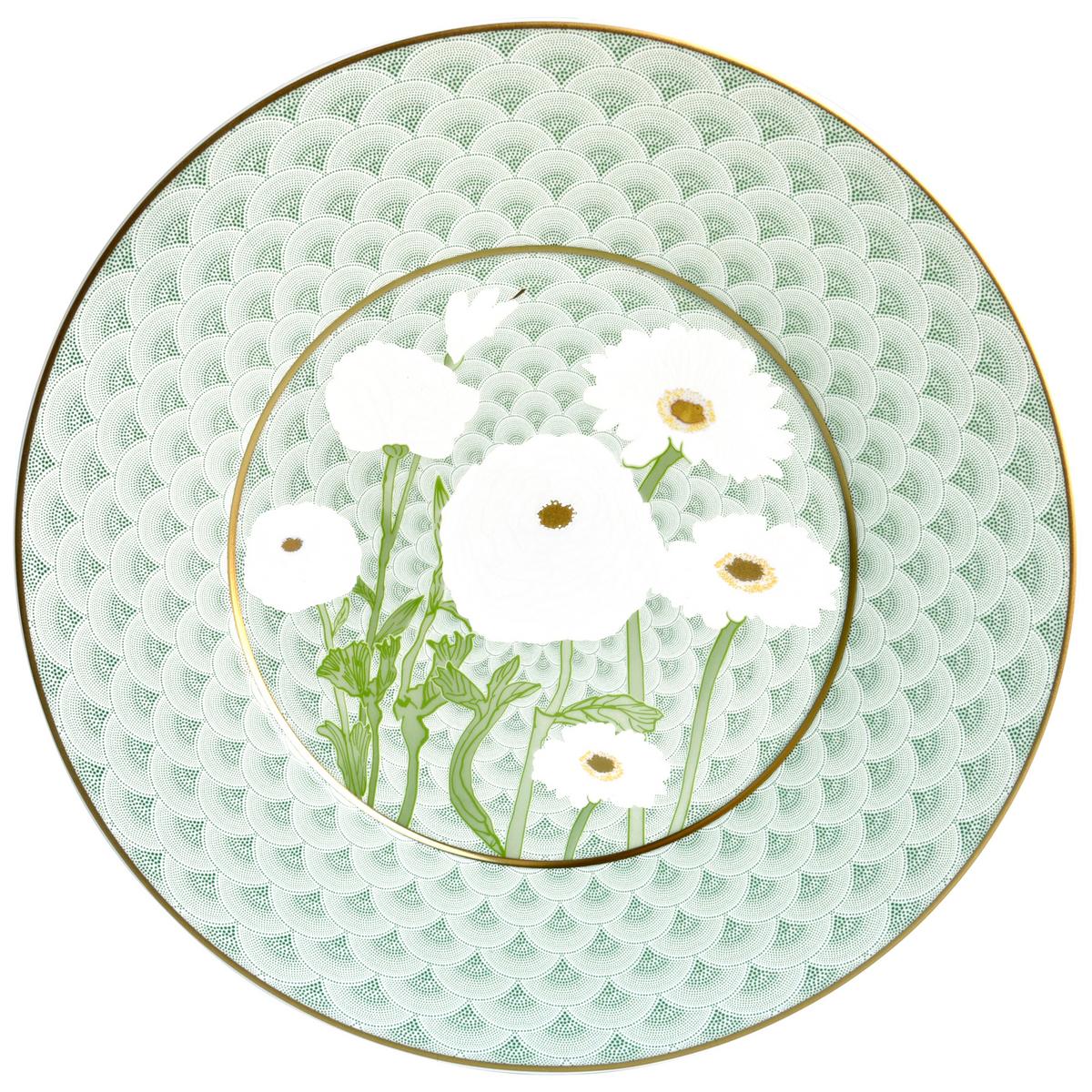 Das Tafelservice "Praiana" von Bernardaud ist eine Hommage an den Jugendstil, der derzeit auch von vielen Interior-Designern neu entdeckt und interpretiert wird. Das feine Limoges-Porzellan zeigt ein Art Nouveau Dekor in zartem Lindgrün in Kombination mit einem zeitgenössischen, naturalistischen Blumenmotiv in frischem Grün und leuchtendem Weiß. Die goldenen Umrandungen verleihen "Praiana" eine luxuriöse Anmutung.