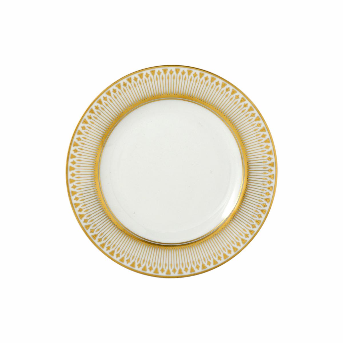 Goldene Strahlen schmücken das Tafelservice "Soleil Levant" von Bernardaud. Vor allem bei den großen, runden Tellern erkennt man, die Inspiration hinter diesem reich verzierten Service: Die aufgehende Sonne. Besonders wirkungsvoll ist deshalb auch die Kombination der weiß-goldenen Essteller des Tafelservices "Soleil Levant" von Bernardaud mit farbigen Desserttellern. Sie wirken wie ein zart gefärbtes Stück Himmel — in Altrosé, Violett, Honiggelb oder Chocolat.