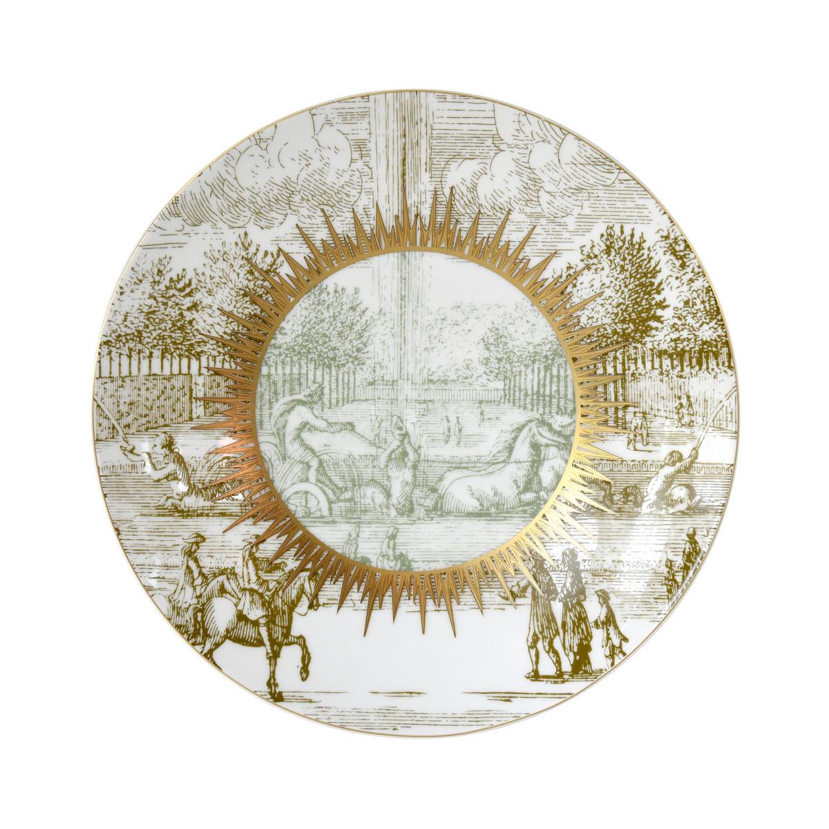 Das Service "Versailles Enchanté" stellt die Gärten, vom Schloss aus gesehen, und die Vorführungen dieser Festlichkeiten dar. Jeden Teller ziert ein anderes Motiv. Dies macht es besonders spannend, die verschiedenen Tellergrößen und Designs miteinander zu kombinieren.