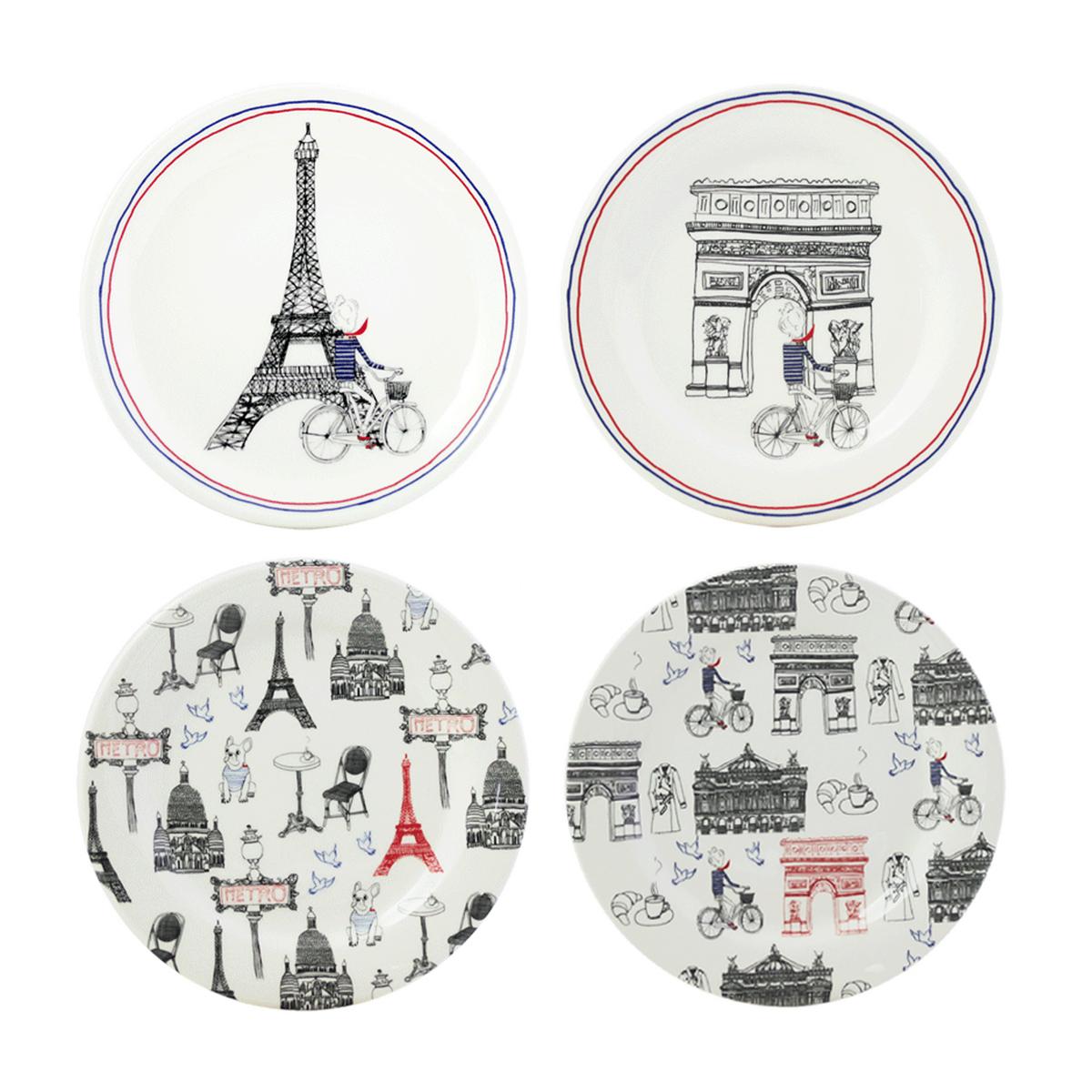 "Ca c'est Paris" Set aus 4 Brottellern, 4 Dekore von Gien