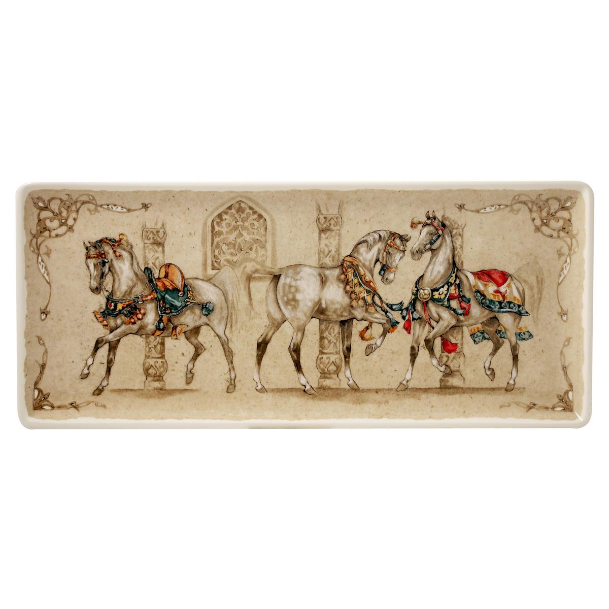 "Zu Hause fest im Sattel. Naturgetreue Zeichnungen geschmückter Pferde sowie Details von Accessoires und Zaumzeug verleihen dem Service der Serie "Chevaux du Vent" seine beeindruckende Lebendigkeit."