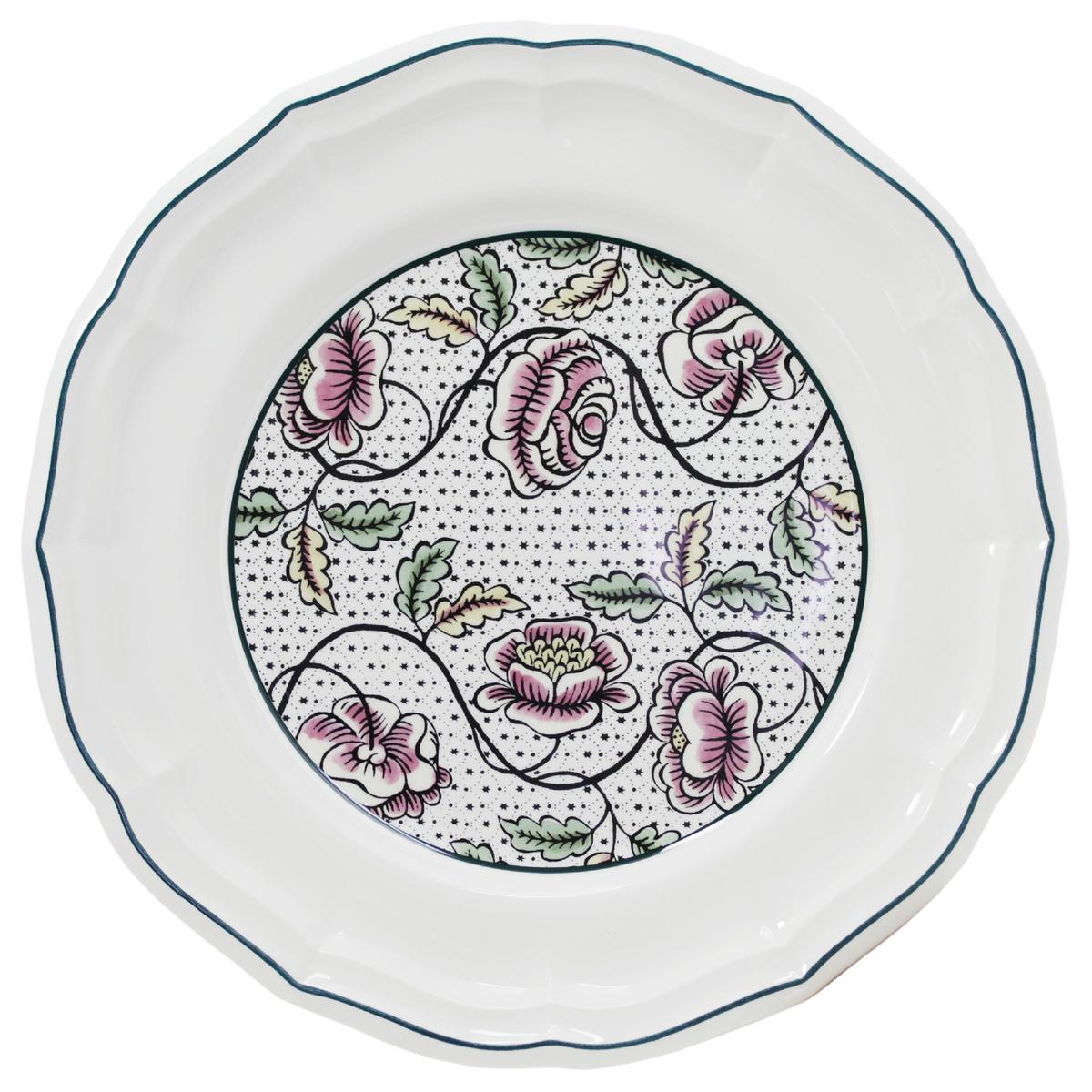 Das Tafelservice "Dominoté" von Gien entstand aus der Zusammenarbeit von Gien und einer kleinen Tapetenmanufaktur "Antoinette Poisson", die nach dem Verfahren aus dem 18. Jahrhundert handbedruckte und handbemalte Tapetenblätter "Dominoté" herstellt.