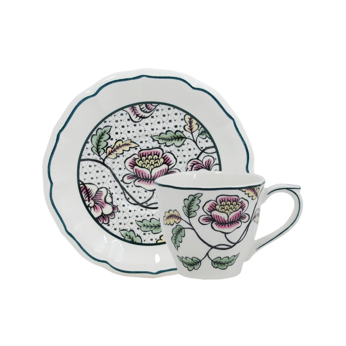 Die zauberhafte Muschelform des Services aus ecrufarbener Fayence schmücken florale und geometrische Motive. "Roses", "Louis XIII" und "Artifices" wurden exklusiv für Gien von den Künstlern der Tapetenmanufaktur "Antoinette Poisson" gezeichnet, während die Motive "Indienne" und "Medecis" von Archivdokumenten aus dem 18. Jahrhundert inspiriert sind. Die feinen Linien in der Farbe Petrol sind handbemalt.