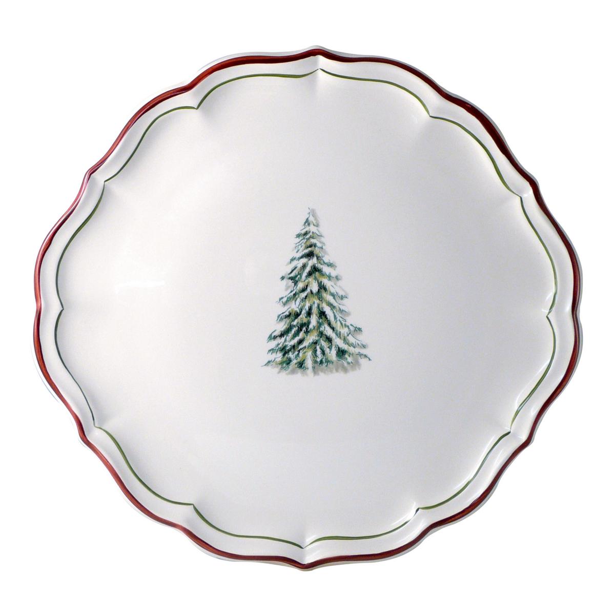 Ein Wintermärchen wird wahr! Die verschneite Tanne verleiht den Fayencen einen besonders romantischen Look. Die Umrandungen in den traditionellen Weihnachtsfarben Rot und Grün sind von Hand aufgetragen und bringen die zart geschwungenen Formen eines jeden Teils besonders charmant zur Geltung.
