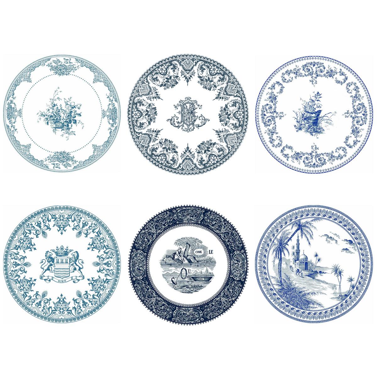 "Les Dépareillées Bleu" Essteller, 6er-Set, 6 Dekore von Gien