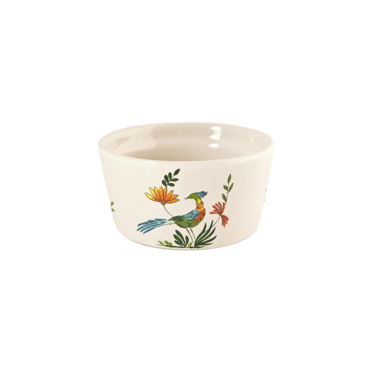 Einen eleganten Rahmen für diesen exotischen Garten formt der sanft geschwungene wellenförmige Rand der Teller und Schüsseln "Oiseaux de Paradis". Um dessen anmutige Geometrie zu betonen, verzieren die Kunsthandwerker aus Gien an der Loire diese Linie mit einem schmalen blauen Rand. Klassischer Landhausstil mit einem Hauch Exotik.
