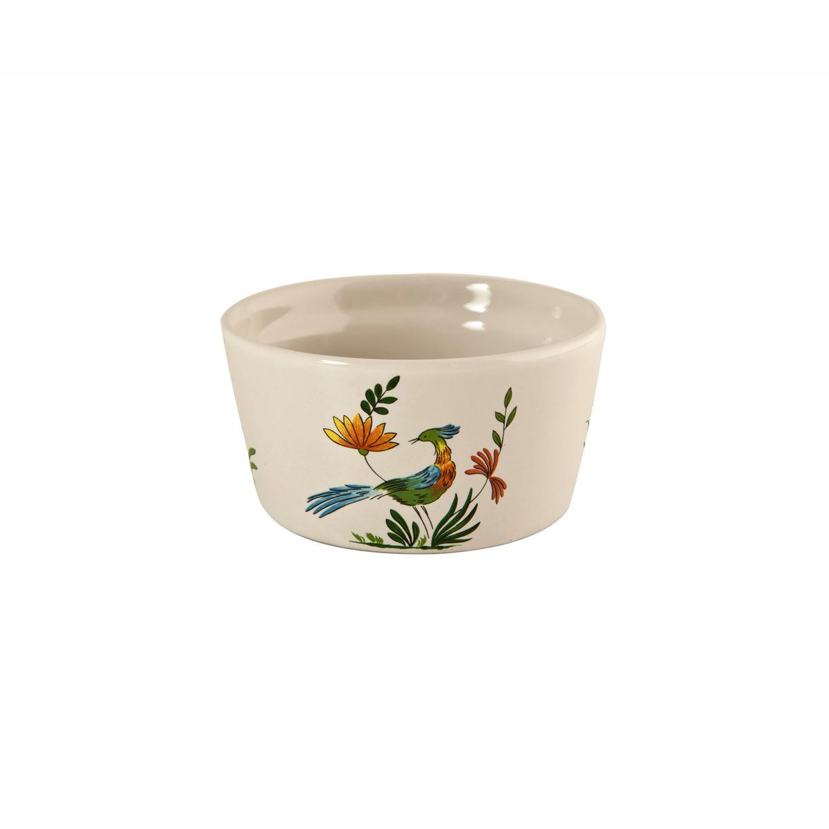 Einen eleganten Rahmen für diesen exotischen Garten formt der sanft geschwungene wellenförmige Rand der Teller und Schüsseln "Oiseaux de Paradis". Um dessen anmutige Geometrie zu betonen, verzieren die Kunsthandwerker aus Gien an der Loire diese Linie mit einem schmalen blauen Rand. Klassischer Landhausstil mit einem Hauch Exotik.