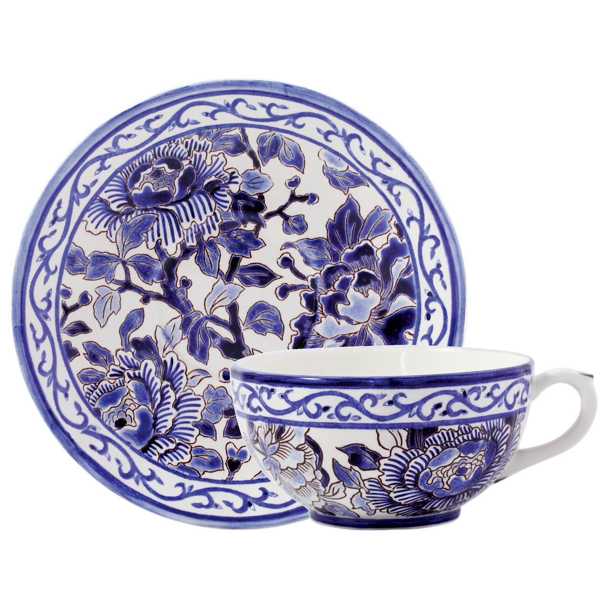 "Pivoines Bleues" Tasse "Café au lait" mit Unterteller von Gien
