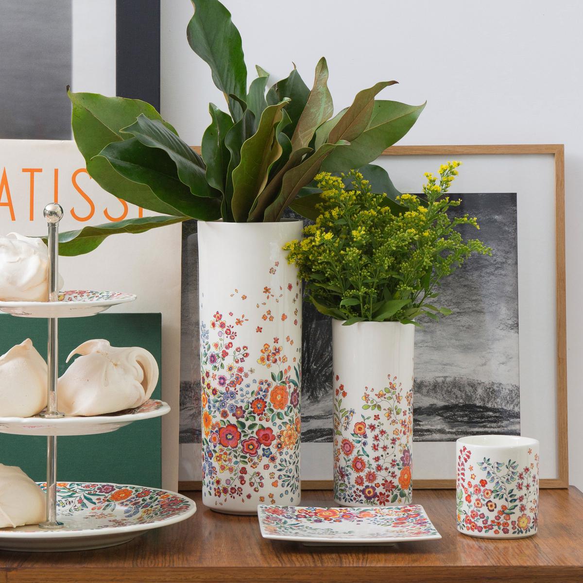 Die belgische Illustratorin Isabelle Barthel hat das sommerliche Service "Poesie" für Gien entworfen. In Zusammenarbeit mit der Künstlerin sind schon viele erfolgreiche Kollektionen in der Manufaktur Gien entstanden. Für ihre Designs lässt sich die Illustratorin oft von der Natur inspirieren. "Poesie" ist das Versprechen der Natur auf ständige Erneuerung. Jede abgebildete Blume, jeder Stängel und jedes Blatt ist anders und steht für den Reichtum der Natur, aber auch für die Liebe zum Detail und die Sorgfalt, mit der in der Manufaktur Gien gearbeitet wird. Für eine gemütliche Tee- oder Kaffeerunde oder ein ausgedehntes Mittagessen, dieses florale Muster passt zu vielen Anlässen. Sein Druck in lebhaftem Orange, Rosa und Blau scheint gute Laune auszustrahlen.