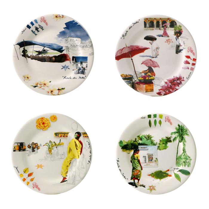 "Route des Indes" Set aus 4 Desserttellern, 4 Dekore von Gien