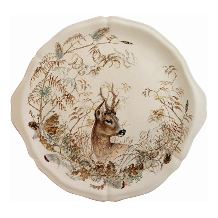 "Sologne" ist ein Entwurf von Estelle Rebottaro für Gien France und stellt die Tiere naturgetreu auf der cremefarbenen Fayence dar.