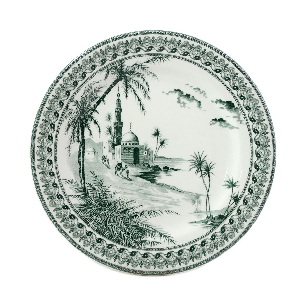 "Vues d'Orient" von Gien lädt Sie zu einer exotischen und nostalgischen Reise an einen fernen Ort im Osten ein. Das Design "Vues d'Orient" wurde erstmals in den 1870er Jahren herausgegeben und erhielt 1876 auf der Weltausstellung in Philadelphia eine Goldmedaille und ein Ehrendiplom. Es spiegelt den modischen Orientalismus-Trend der Zeit wider. Gien präsentiert jetzt aktualisierte Variationen des Themas "Vues d'Orient" in Grüntönen.