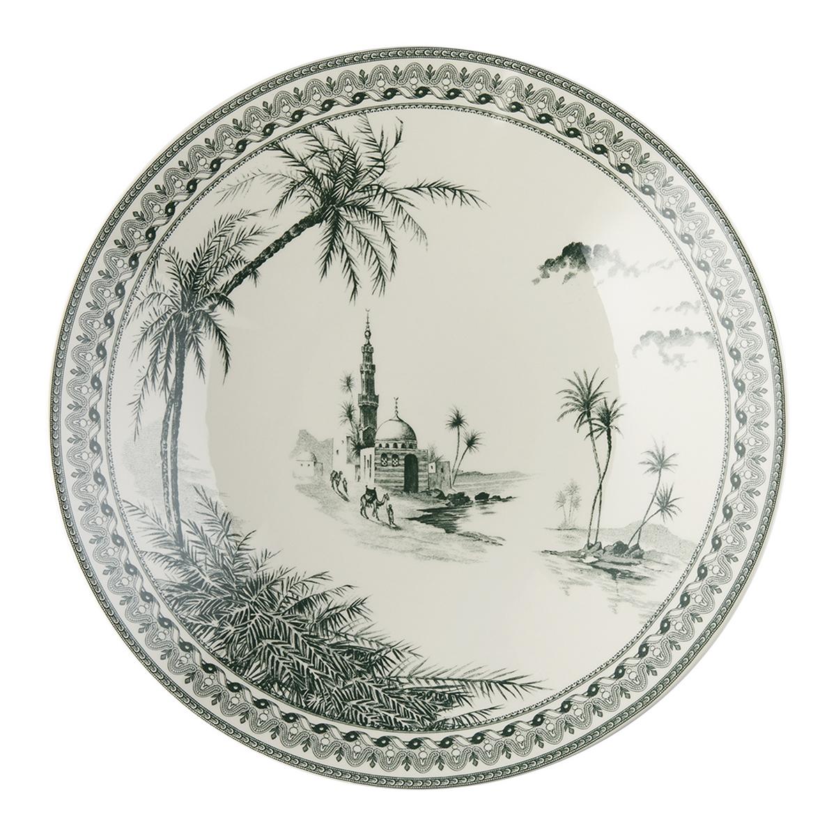 "Vues d'Orient" von Gien lädt Sie zu einer exotischen und nostalgischen Reise an einen fernen Ort im Osten ein. Das Design "Vues d'Orient" wurde erstmals in den 1870er Jahren herausgegeben und erhielt 1876 auf der Weltausstellung in Philadelphia eine Goldmedaille und ein Ehrendiplom. Es spiegelt den modischen Orientalismus-Trend der Zeit wider. Gien präsentiert jetzt aktualisierte Variationen des Themas "Vues d'Orient" in Grüntönen.